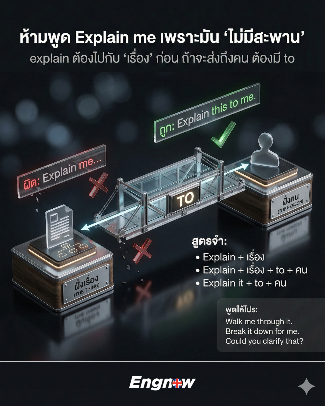 explain + to + คน + เรื่อง (ข้ามสะพานไปหาคน)